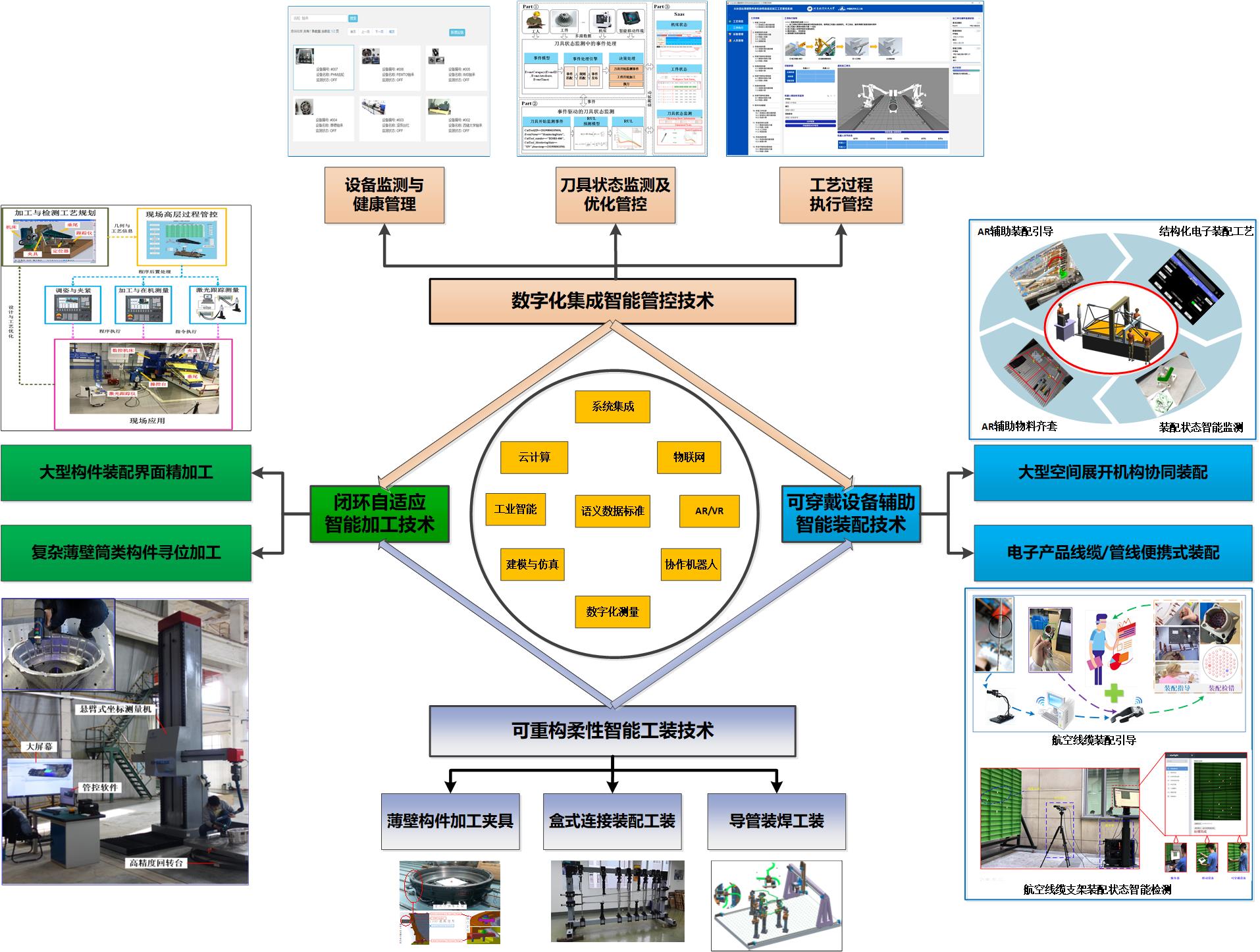 科研工作主要围绕四个技术主题开展:I-薄壁构件智能加工、II-可穿戴扩展现实(XR)辅助智能装配、III-可重构柔性智能工装、IV-数字化集成智能管控,四个主题的相关基础技术包括数字化测量、机器人、工业智能、AR/VR/MR(XR)、建模与仿真、数据标准、系统集成等。研究主题及关系如下图。  近10年来主持和承担的代表性科研项目: 主题I:大型薄壁构件智能加工技术: l虚实工艺融合的大型薄壁零件连续离散自适应加工系统精确建模与平行管控。国家自然科学基金。主持。 l大部件装配界面分体式互操作自适应精加工理论与应用基础。国家自然科学基金。主持。 l基于场模型与关键特性的大尺寸球坐标测量系统优化配置方法。国家自然科学基金,主持。 lXXX薄壁筒类构件多机器人协同高精度加工技术。基础科研项目。参与(技术负责人)。 ●超薄异形铝合金大型构件智能生产线建设技术研究。山西省重点研发项目。主持(课题)。 ●基于视觉测量的大型构件原位感知及精准定位技术研究。复杂产品智能制造系统技术国家重点实验室基金。主持。 ●高速飞行器舱段薄壁件形/性误差协同高阶补偿机理与建模研究。国家自然科学基金。参与。 主题II:可穿戴设备与AR/VR辅助智能装配技术: l面向大型XXX机构装配现场的可穿戴技术。XXX基础科研项目,主持。 l可穿戴增强现实设备辅助的智能装配技术。XXX计划项目。主持。 l混和现实装配可视化智能引导技术。北京卫星制造厂有限公司项目。主持。 l基于虚拟现实/增强现实的智能化辅助装配技术。工信部民机科研项目,参与。 l面向蒙皮阵列精准装配的容差优化与MR引导技术。国防基础科研项目,参与。 主题III:可重构柔性智能工装技术: l基于盒式连接的可重构智能装配工装型架系统。XX计划项目。主持。 l盒式连接XXXX智能装配工装技术。XXX基础科研项目,主持。 l飞机导管柔性工装智能配置与仿真软件。陕飞公司项目,主持。 l某型XXX垂尾装配型架模块化设计与分析技术研究。成飞/成都敏捷公司合作项目。主持。 l盒式连接可重构工装快速设计与分析软件。中国商飞合作项目。主持。 主题IV:车间/生产系统的数字化集成智能管控技术: l飞机典型制造车间智能管控技术。工信部民机科研项目,专题负责人。 l基于数字孪生的生产系统全要素实体精准建模。国家重点研发计划项目。参与。 lXXX薄壁筒类构件多机器人协同加工工艺管控技术及系统。基础科研项目。技术与课题负责人。 lXXX导弹对接装配数字孪生系统。科技部国家重点研发项目子课题。负责人。 l飞行器结构特征的机器人扫描测量数据处理及检测系统。北京航天新风设备公司项目。主持。 l虚实工艺融合的大型薄壁零件连续离散自适应加工系统精确建模与平行管控。国家自然科学基金。主持。 发表的代表性论著: lJian Zhou, Lianyu Zheng, YiweiWang. Collaborative Optimization for Multirobot Manufacturing System Reliability through Integration of SysML Simulation and Maintenance Knowledge Graph[J]. Journal of Manufacturing Systems, 2025, 80: 749-775. lXuexin Zhang, Lianyu Zheng, Wei Fan, et al. Multi-domain data-driven chatter detection in robotic milling under varied robot poses based on directional attention mechanism. Mechanical Systems and Signal Processing, 2025, 227: 112406. lXuexin Zhang, Lianyu Zheng, Zijie Zhao, et al. Self-adaptive modification of robot scanning path for distributed features of large-scale components based on pose estimation. Measurement 257 (2026) 118670 lWang Binbin, Zheng Lianyu, et al. LLM-based multi-agent task planning for human-robot collaborative assembly balancing operator experience and efficiency[J]. Journal of Manufacturing Systems, 2025, 82: 1020-1045 lWang Binbin, Zheng Lianyu, et al. Context-aware AR adaptive information push for product assembly: Aligning information load with human cognitive abilities[J]. Advanced Engineering Informatics, 2025; 64: 103086 lBinbin Wang, Lianyu Zheng, et al. Towards the industry 5.0 frontier: Review and prospect of XR in product assembly. Journal of Manufacturing Systems 74 (2024) 777–811. http://doi.org/10.1016/j.jmsy.2024.05.002 lJian Zhou, Lianyu Zheng. Multirobot collaborative task dynamic scheduling based on multiagent reinforcement learning with heuristic graph convolution considering robot service performance[J]. Journal of Manufacturing Systems, 2024, 72: 122-141. lJian Zhou, Lianyu Zheng, et al. Intelligent hierarchical compensation method for industrial robot positioning error based on compound branch neural network automatic creation[J]. Journal of Intelligent Manufacturing, 2024. lYiwei Wang, Meili Li, Lianyu Zheng, et al. Phyformer: A degradation physics-informed self-data driven approach to machinery prognostics. Advanced Engineering Informatics 62 (2024 ) 102772. http://doi.org/10.1016/j.aei.2024.102772 lXuexin Zhang, Liayu Zheng, et al. Knowledge graph and function block based Digital Twin modeling for robotic machining of large-scale components. Robotics and Computer-Integrated Manufacturing,2024, 85(102609):1-19.DOI: 10.1016/j.rcim.2023.102609 lXiong Zhao, Lianyu Zheng, Maoyuan Shi, et al. Unified modelling for continuous–discrete hybrid adaptive machining CPS of large thin-walled parts. International Journal of Production Research, 2023, DOI:10.1080/00207543.2023.2217304. lShuang Meng, Lianyu Zheng, Jian Zhou. Intelligent layout optimization of reconfgurable fexible fixture for assembling multiple aircraft panels. The International Journal of Advanced Manufacturing Technology, March 2023 lWei Fan,Qiang Fu,Yansheng Cao, Lianyu Zheng, et al. Binocular vision and priori dat